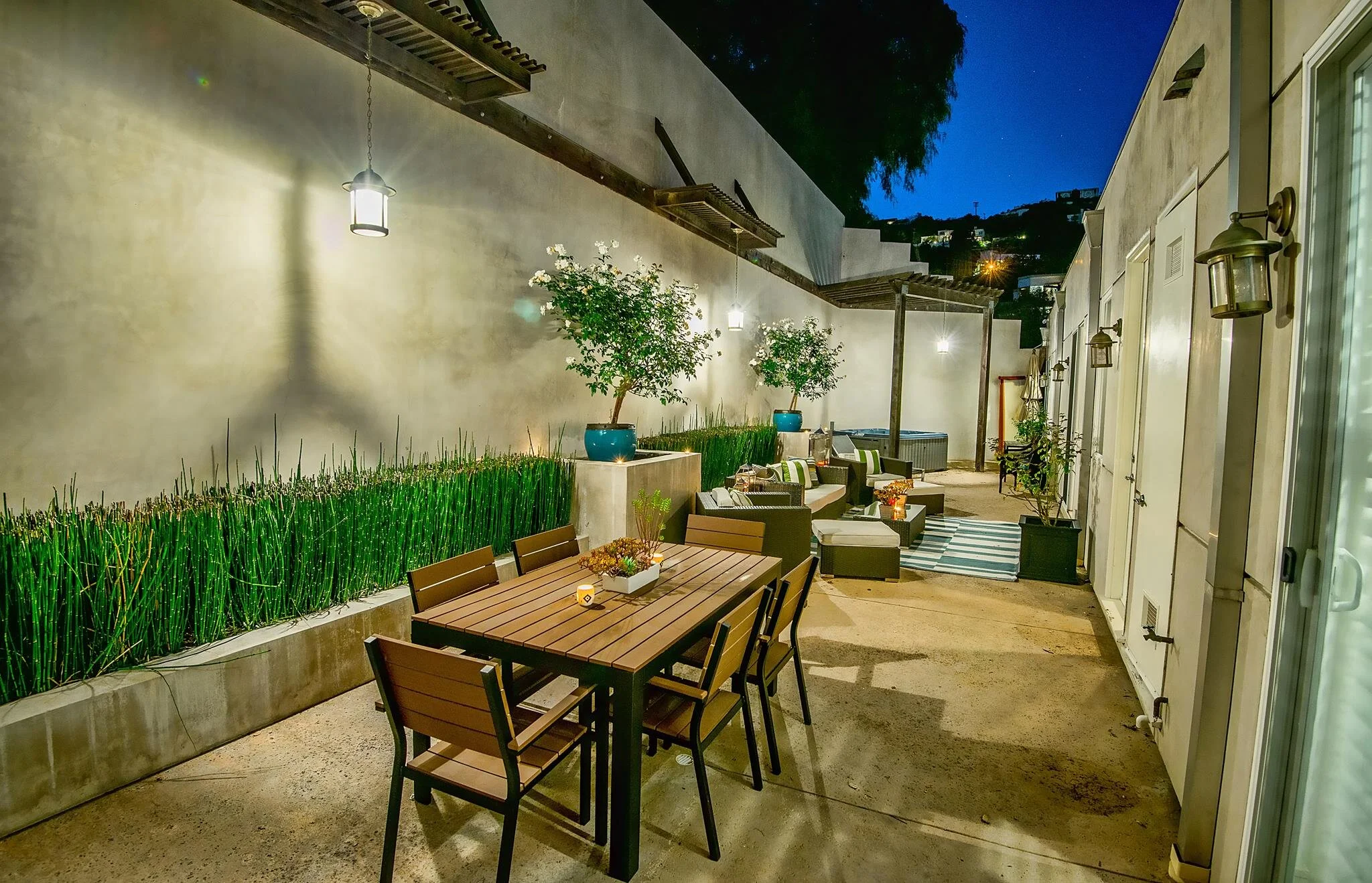This sophisticated and refined contemporary home is ideally located in the private hills of Sherman Oaks. The deluxe high ceilings give a gallery-style feel to the sun drenched, modern living space. Boasting an open floor plan ideal for entertaining, the wide-plank hardwood floors create a warm ambiance throughout. Complete with a sleek, gourmet chef's kitchen with stainless steel appliances, 3 luxuriously large bedrooms that all have direct access to the expansive upper terrace. The terrace is a refuge for dining, private entertaining, relaxing, sunbathing or enjoying the spa tub. The master suite is equipped with a fireplace, sitting area, large walk in closet and en suite bath with a double vanity, soaking tub and large shower. Direct two car garage access into the home which is secured with a sophisticated camera/alarm system. Situated in the coveted Roscomare school district this home was completed with an unparalleled attention to detail.